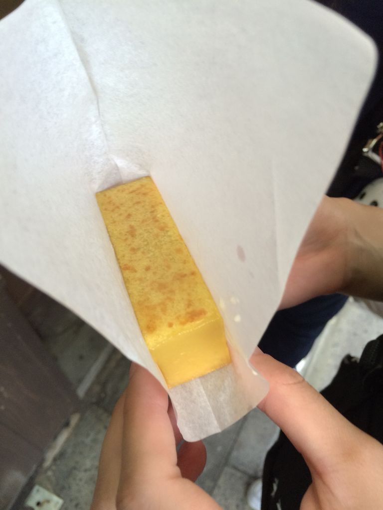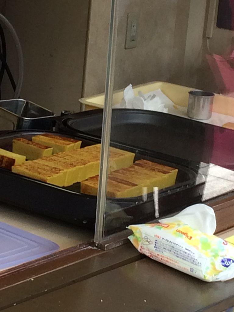 焼かれています!こんがり焦げ目がついて卵焼きのような見た目です。