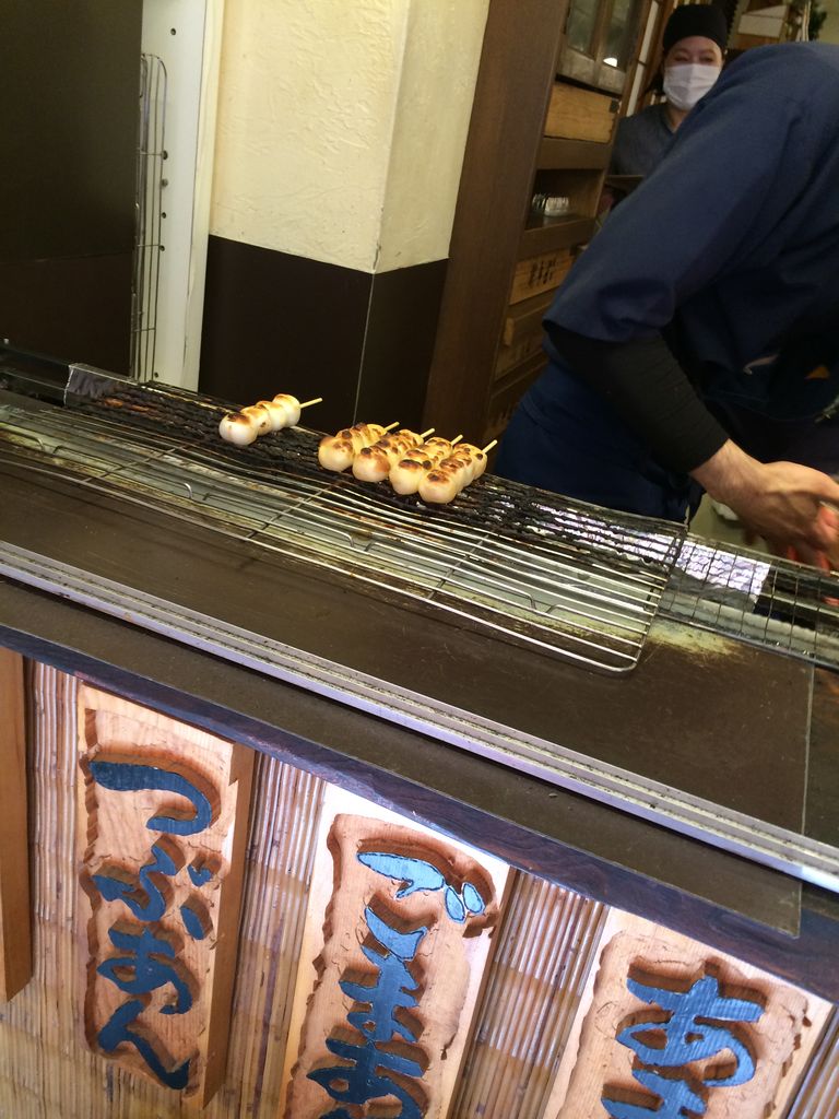 注文をすると焼いてあるおだんごを網であぶって温めてくれました。